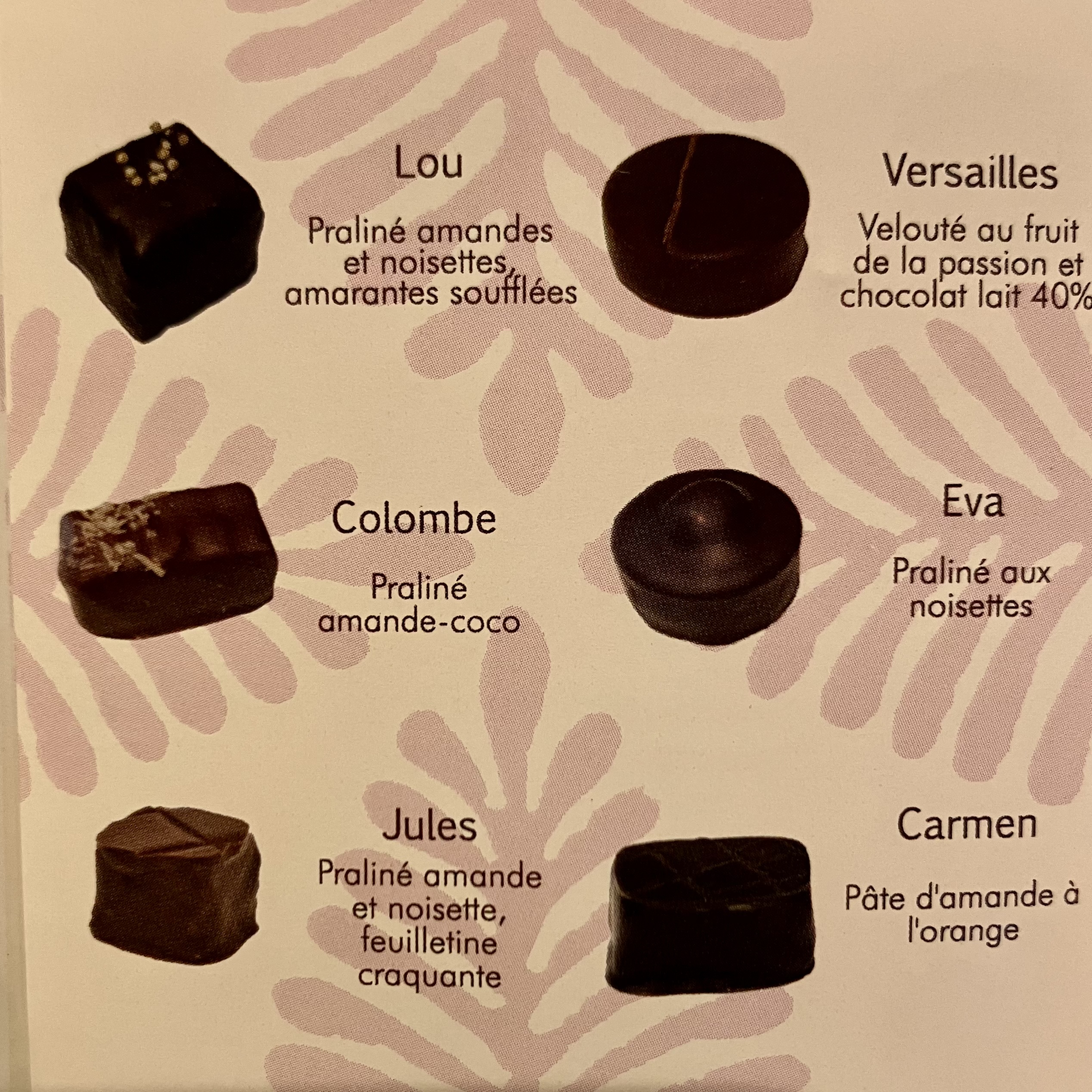 - Tailles et tarifs : 4 chocolats 6,90 € / 12 chocolats 18,80 € / 24 chocolats 36,80 € / 32 chocolats 47,80 € / 500 grammes : 68,50 € / 750 grammes 100,45 € / 1 kilogramme 130,00 €